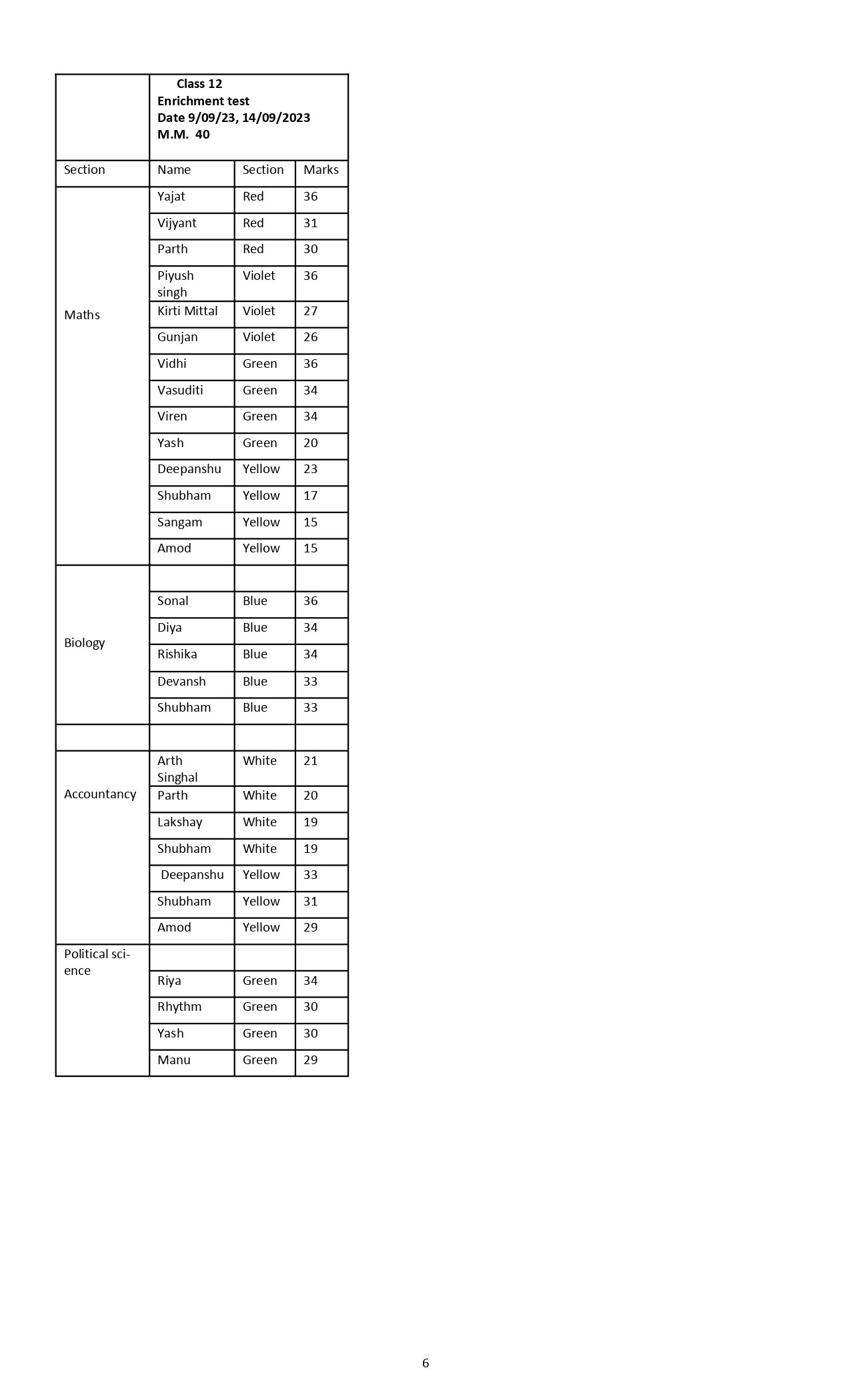 Monthly Breakup syllabus