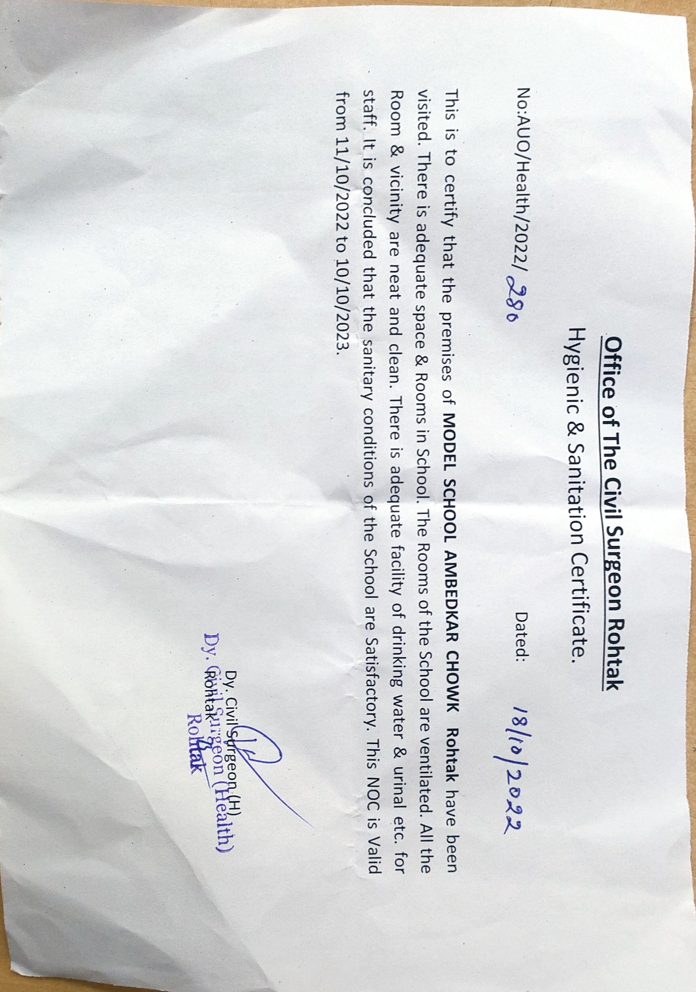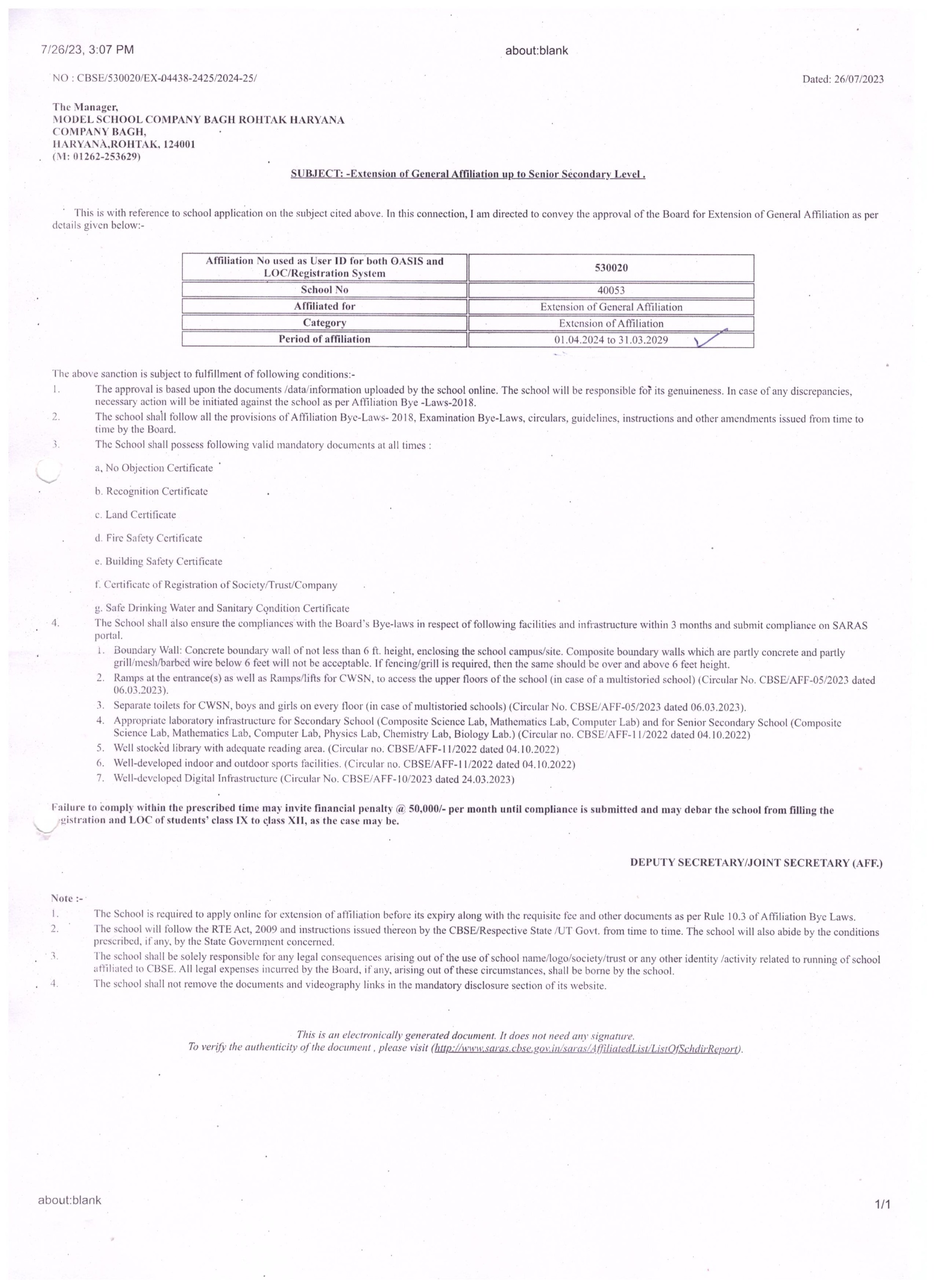 COPY OF THE DEO CERTIFICATE SUBMITTED BY THE SCHOOL FOR AFFILIATION/ UPGRADATION/ EXTENSION OF AFFILIATION OR SELF CERTIFICATION BY THE SCHOOL |