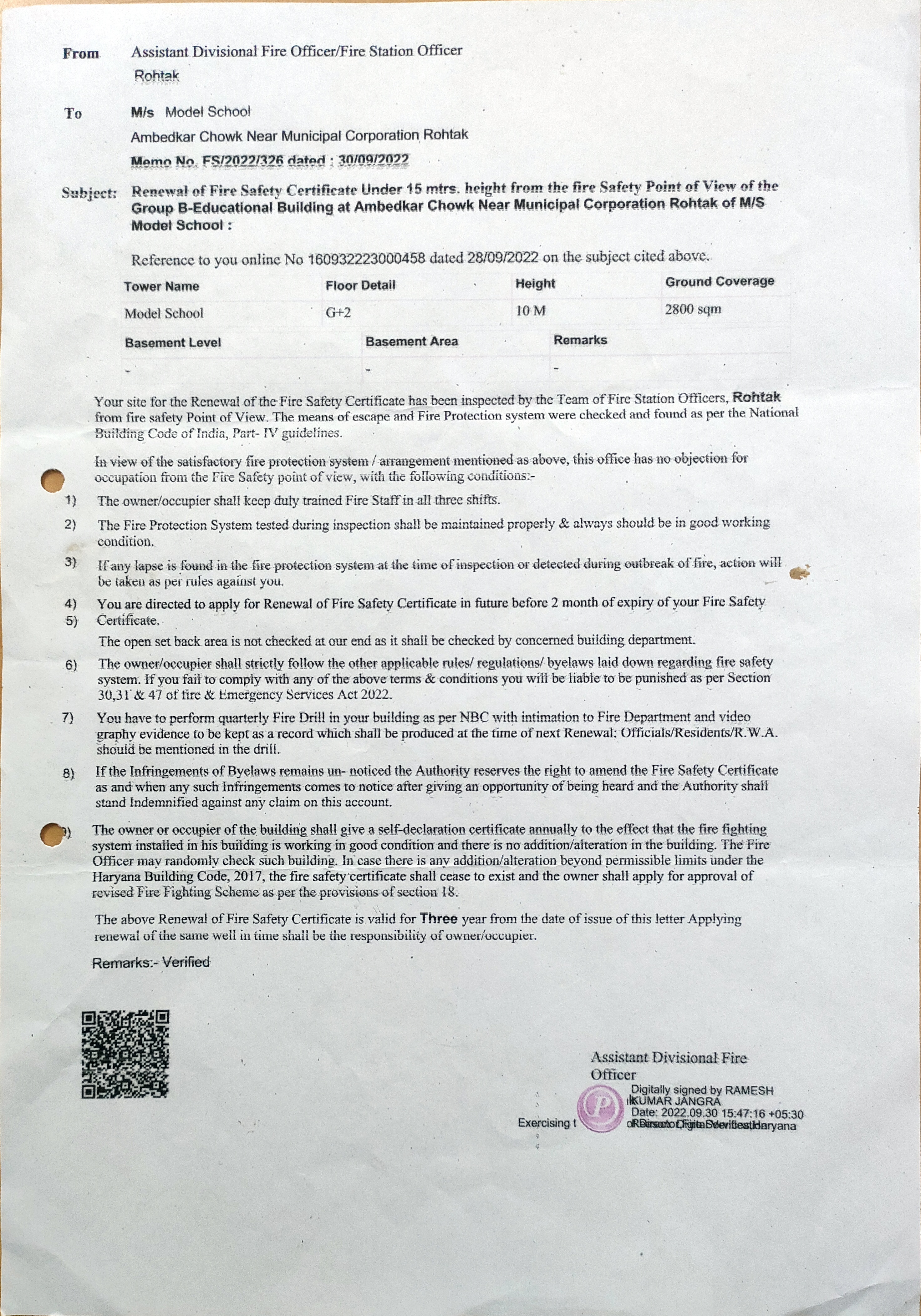 COPY OF VALID BUILDING SAFETY CERTIFICATE AS PER NATIONAL BUILDING CODE |